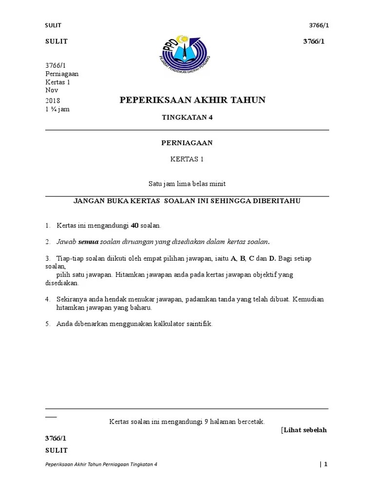 Contoh soalan peperiksaan perniagaan tingkatan 4.